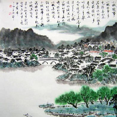5月8日—15日,一场名为“到了石山水画中寻找庄奴歌词意境——了石山水书画展”在福建泉州市工人文化宫展览馆展出。图为了石先生根据庄奴先生的歌词意境创作的题为“小城故事”的山水书画。作 者:郭斌